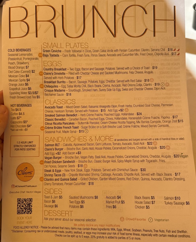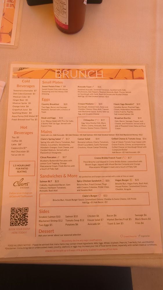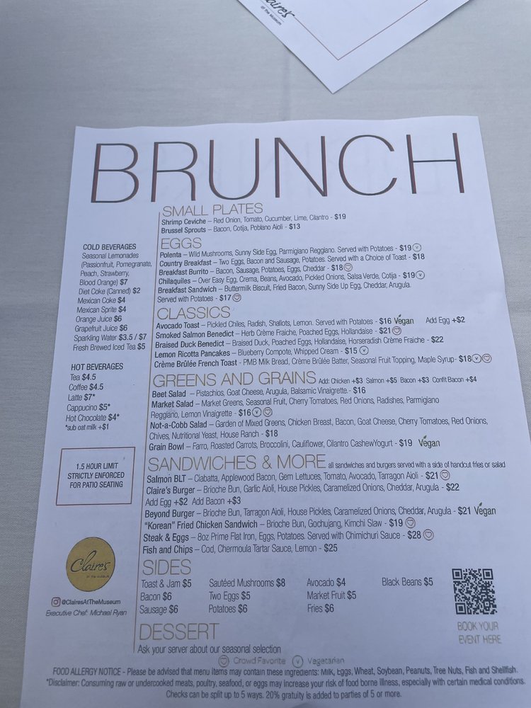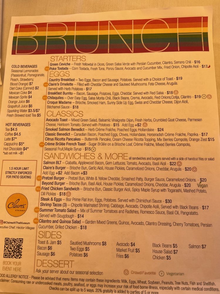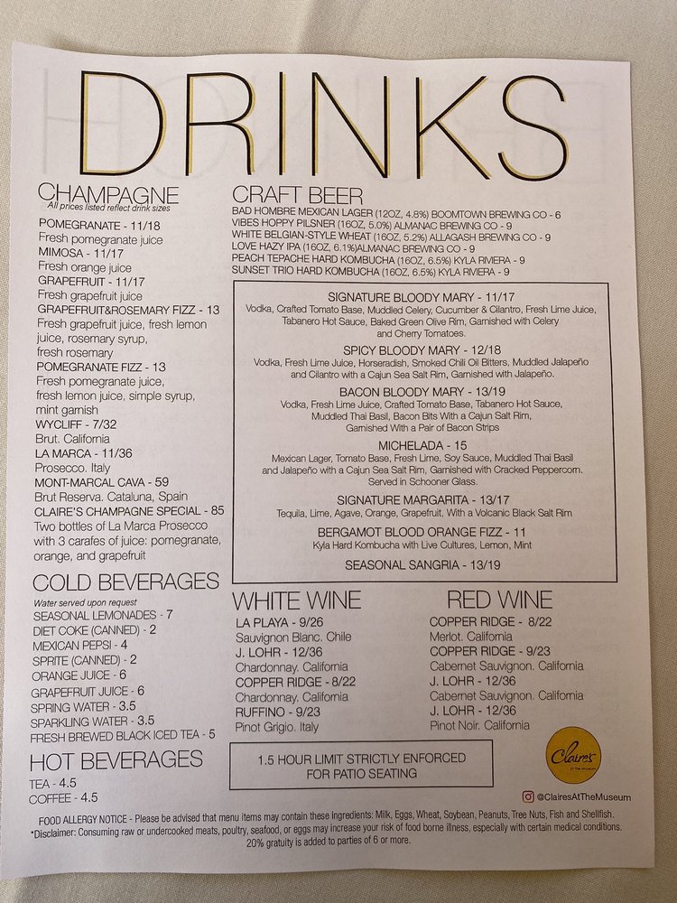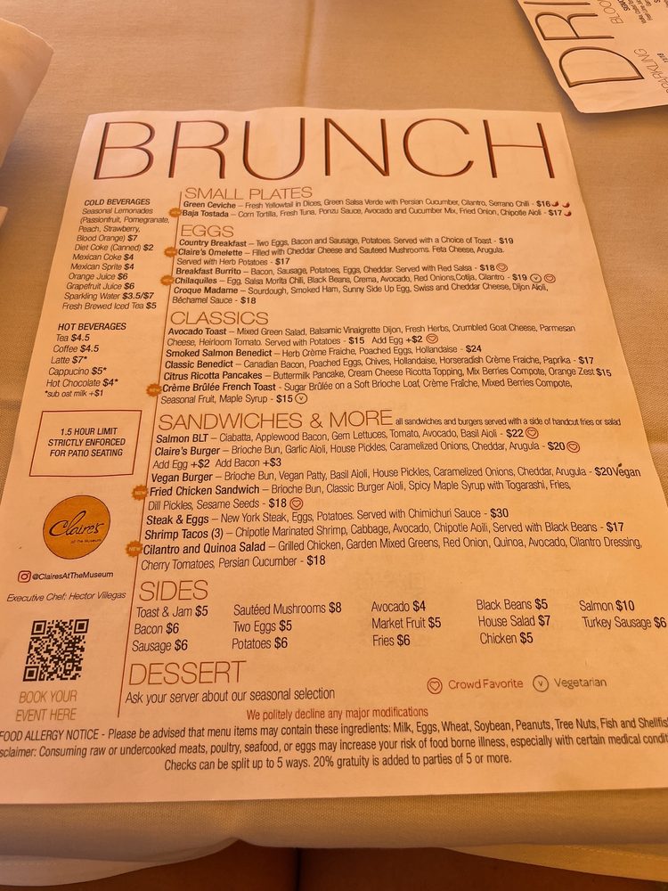 Welcome to Claire's At the Museum, a stunning New American café located at 2300 E Ocean Blvd, Long Beach, CA. Specializing in breakfast and brunch, this gem combines delicious cuisine with a breathtaking ocean view. The menu features an array of enticing options, including small plates like Shrimp Ceviche and Broccolini, alongside hearty breakfast offerings such as the renowned Egg In The Hole and the crowd-favorite Breakfast Sandwich.